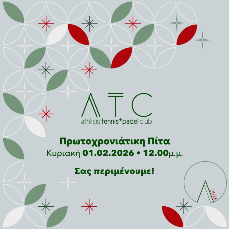 Ο Φεβρουάριος ξεκινά με την κοπή Πρωτοχρονιάτικης πίτας, με φιλικά παιχνίδια για τα παιδιά της ακαδημίας μας, με αγώνες ενηλίκων για το 1ο ATC Members’ Tour 2026 και τουρνουά Americano Padel σε διάφορες κατηγορίες .