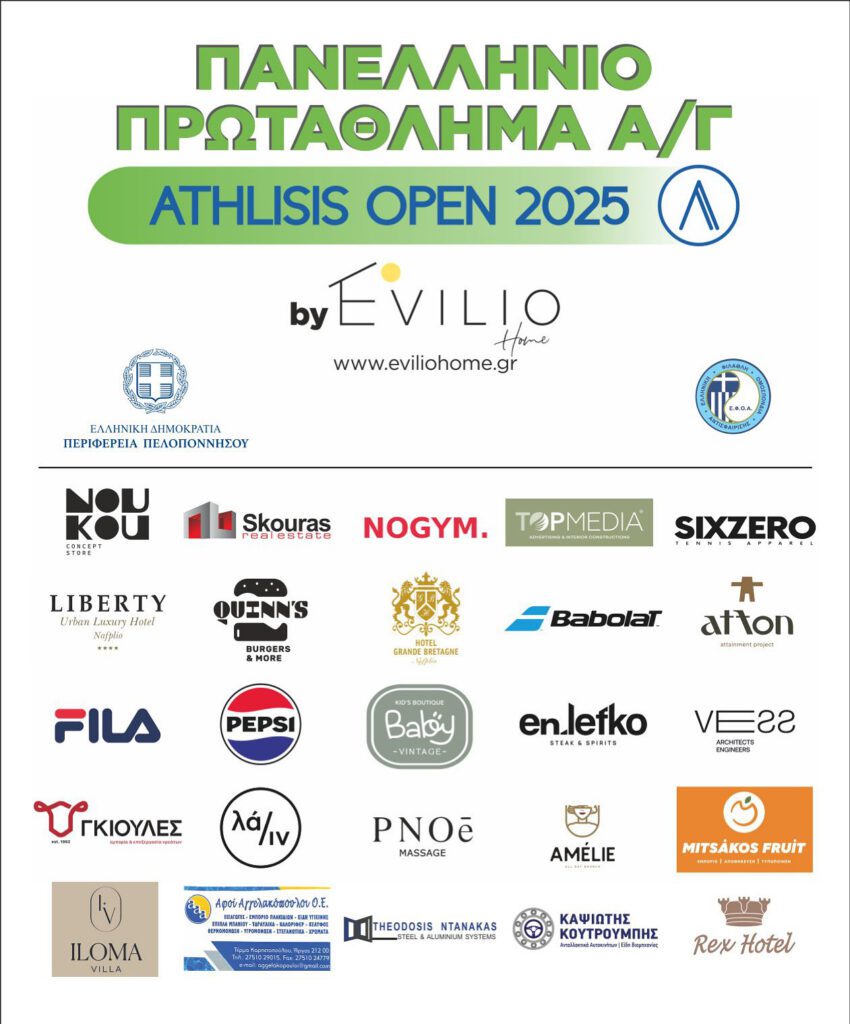 Το Πανελλήνιο Βαθμολογούμενο Πρωτάθλημα ανδρών γυναικών κατηγορίας 01, με χρηματικό έπαθλο 3000 ευρώ, με την επωνυμία “Athlisis Open 2025 by Evilio Home” πραγματοποιήθηκε με απόλυτη οργανωτική και αγωνιστική επιτυχία προσελκύοντας μικρούς και μεγάλους φίλους του τένις .